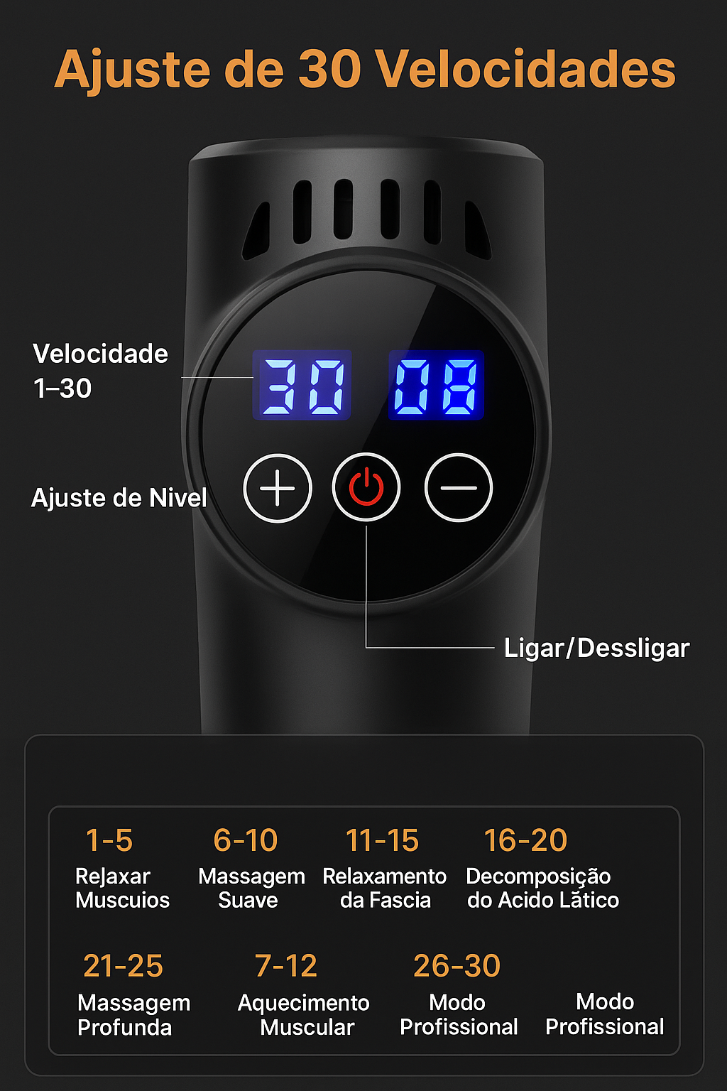 Com 30 níveis de intensidade e 8 ponteiras diferentes, você escolhe o tipo de massagem ideal para cada parte do corpo. Seja para soltar a tensão no pescoço, relaxar as costas ou recuperar a musculatura das pernas, ela oferece um tratamento completo e personalizado.